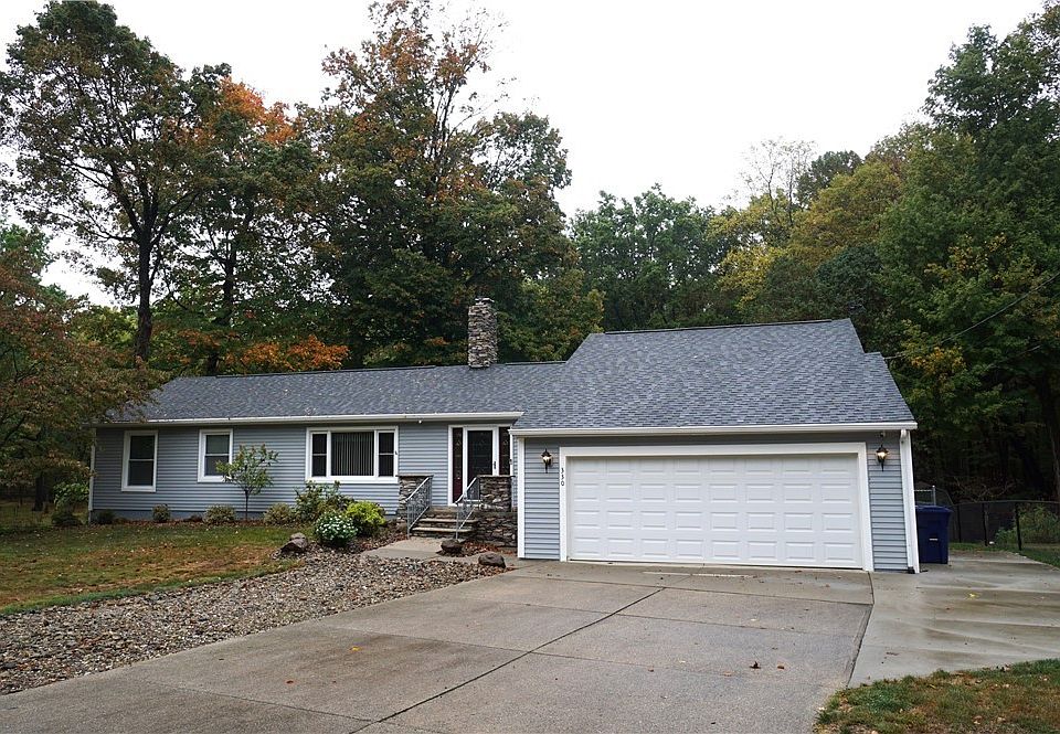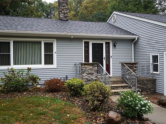 Beautifully renovated in 2011, this sprawling Tallmadge ranch is set on a private, wooded lot featuring a spectacular koi pond and waterfall that enhances the tranquil setting. This 3 Bedroom/3 Full Bath home was transformed with the addition of a sizable Great Room and the expansion of the Primary Bedroom and Kitchen. As you approach the home, you’ll notice the stone veneer accents on the front porch and chimney. An elegant front door welcomes you into a sizable entry with ceramic tile flooring that shares space with a unique Hearth Room. Matching stone veneer makes the wood burning fireplace a nice focal point. Hearth Room melds nicely with Great Room providing a perfect place for entertaining. A wall of windows looks onto the picturesque backyard while the cathedral ceiling enhances the room’s spacious feeling. A 2019 Kitchen renovation saw the addition of granite countertops, undermount stainless steel sink, and stylish backsplash that enrich the stunning Hickory Kraftmaid cabinets. While the breakfast area adjoins the Eat-in Kitchen, a formal Dining Room with hardwood floors is just a few steps away. Down the hall, the sleeping quarters have 3 Bedrooms and 2 Full Baths. 2 ample bedrooms share a nicely updated bath while the substantial Primary Bedroom boasts his-and-her closets and a practical en suite bathroom. A Screened-in Porch that was added in 2018 sports wire railing accents, shaker siding, a vaulted ceiling and designer ceiling fan. Downstairs, the basement provides a few finished spaces including a carpeted rec area, an office equipped with furniture that could be converted into a 4th bedroom, and a nicely updated 3rd full bathroom. The expansive basement has multiple storage spaces as well as a space for a workshop. Basement walks out to the lower-level concrete patio with access to the backyard. Exterior amenities include 2 storage sheds, firewood storage rack, and a fenced-in dog pen. Call your favorite realtor today to schedule a private showing!