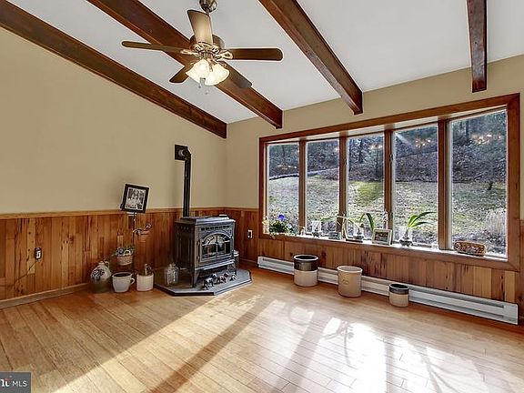 Put Your Name On The Mail Box and move right into this 3 bedroom split -level home with an English Tudor Style. Features include a large living room with bamboo flooring, beamed vaulted ceilings, bay window, open staircase and pellet stove. Kitchen offers vinyl tile, appliances, & dining area with french doors to the patio. Lower level family room is very cozy with an electric fireplace, nice flooring, french doors, & half bath w/ laundry. Master bedroom offers ample closet space and full bath. Attached is the 30x32 oversized garage (plenty of room for a workshop) All situated on 1.94 acres adjoining Michaux State Forest. Home is next to four wheeler and snow mobile trails. This is a very private setting with beautiful wildlife that wonders through the property. Cool and unusual ~ Must see!