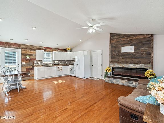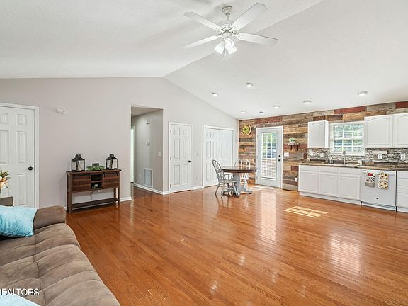 This charming one level home is situated on a half acre lot. Come step into the open concept kitchen, living, and dining room area. The living room area and hallway floors are hardwood while the bedrooms have easy to maintain laminate flooring. The beautiful custom built fireplace and mantel give the home an even cozier feel. The kitchen wall is made with wood handpicked from deconstructed barns creating a beautiful genuine rustic accent piece. From the kitchen you walk out onto the back deck with a large fenced in backyard. Down the hallway you will find a full size guest bathroom and three bedrooms. One of which is a beautiful custom designed nursery/child's room. The master bedroom, conveniently located across the hallway, boasts an attached full bathroom. This beautiful home is freshly painted inside and out! It is conveniently located 15 minutes from Turkey Creek but you still get to enjoy the quiet country living lifestyle. Schedule your showing today!