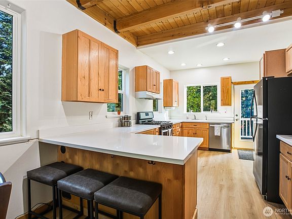 New windows, decking and countertops! Steps from from the slopes at Hyak/Summit East. Incredible views of the ski slopes and East Peak chair from all levels and front deck, you can watch your friends and loved ones make laps on the mtn and they will ski/ride home on a powder day. 5 bedrooms and ADU potential/second kitchen in place, there's plenty of space for entertaining guests or just getting cozy in the mountains. Level lot, west and east facing decks. Generously sized garage provides added storage for all your outdoor toys. Hike, bike, ski, nordic, ride all right out your doorstep. Rent out the lower level long term for passive income. Home is pre-inspected.