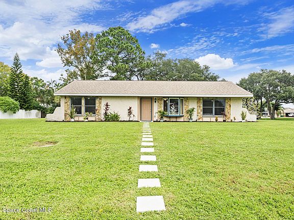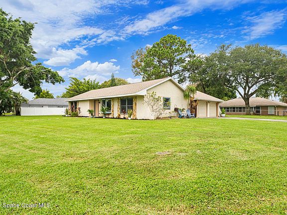 Quiet North Merritt Island well-maintained home on spacious 1/3-acre corner lot in peaceful established neighborhood. Split bedroom layout provides excellent privacy. Brand-new HVAC system and oversized enclosed lanai perfect for year-round entertaining. Open kitchen with granite countertops (2020), modern laminate flooring (2020), generous master suite with en-suite bath, large laundry room with new washer/dryer included. Oversized 2-car garage on side of home provides excellent storage. Newer roof (2019), PVC drain lines, septic system (2017), 50-amp RV hookup, city water. Expansive yard ideal for pool, RV parking, or boat storage. Open skies perfect for stargazing - see spectacular rocket launches! Prime location: minutes to Beachline 528, 10 minutes to Cape Canaveral beaches, 40 minutes to Orlando Airport, close to Disney World.