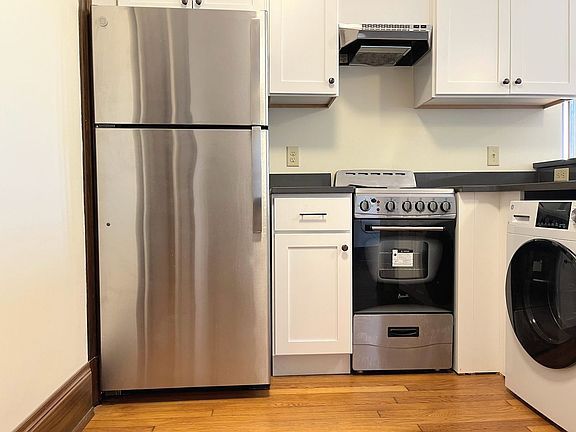 - Stainless steel appliances including refrigerator, dishwasher, and stove
