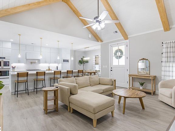 THIS IS THE SINGLE-LEVEL LIVING HOME WITH LAND YOU HAVE BEEN WAITING FOR! This elegant two-year-old custom craftsman farmhouse is on almost 2 acres. Drive home down a long paved driveway to a 3-car garage large enough for all of your cars, trucks, ATV, lawn mowers, golf carts, boats and more. Garage has side door entry and pull-down access to attic storage plus multiple overhead storage racks. Enter into the charm of a vaulted ceiling living/family room with open beams and a log-burning fireplace. The gourmet kitchen has a gigantic 12'x5' countertop for 6+ people, plus a walk-in pantry, dual ovens, 6-burner gas stove, a hooded oven vent, potable water faucet over stove, lots of cabinet storage and cabinet color-matching appliances. Easy access to open concept dining room. The Master on Main has a large walk-in closet and a double vanity ensuite. A second bedroom has a nearby bath and a walk-in closet. The other 2 bedrooms share a bath. Plenty of hot water for everyone with a tankless water heater. You will enjoy the bonus room that can be used as an in-home office, study/library, extra bedroom or media room. Outside, pets and children will love the huge fenced backyard complete with a covered porch and a cemented 1/10 mile walking or bike-riding track.