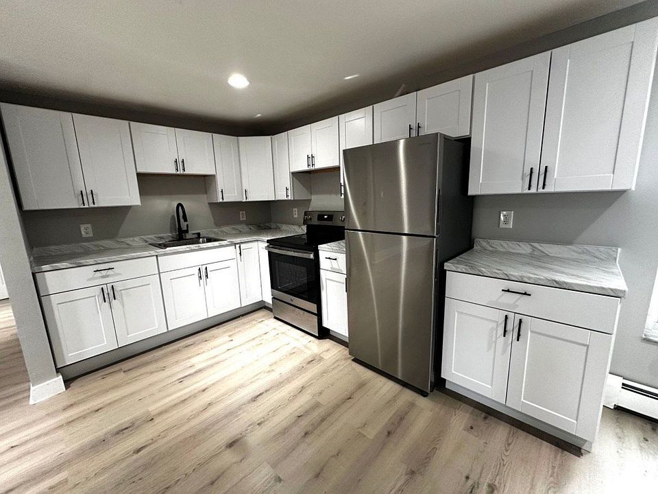 Welcome to 330 Lowell St! This recently renovated 3rd floor 3 Bed and 1 Bath unit boasts brand new flooring, appliances, cabinets, countertops and all new fixtures! Complimented by a spacious living room and your very own laundry room! Off street parking is provided for 1 vehicle.
