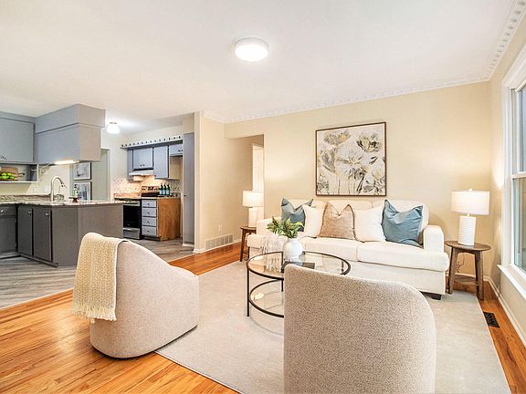 This well-maintained 3 bedroom brick ranch sits peacefully on a quiet cul-de-sac, boasting excellent curb appeal and a spacious 2.5 car detached garage. Inside, enjoy a roomy family room addition and a heated, enclosed porch, perfect for relaxing or entertaining. The living room features wood flooring and flows into an updated kitchen with stainless steel appliances, granite countertops, and modern cabinetry. All bedrooms have hardwood under carpet and plentiful closet space; the hallway includes a linen closet and a full bath with a walk-in shower. The partially finished lower level provides extra living space, and offers plumbing for an additional half bath. Additional highlights include a beautifully landscaped yard, upgraded electrical panel, a mini heat pump/AC in the enclosed porch, and convenient first-floor laundry with washer and dryer.