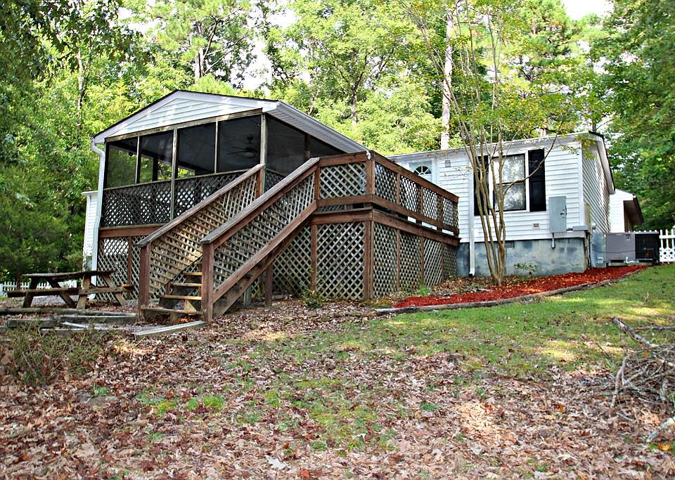 Well maintained waterfront home in the desirable neighborhood of Spinnaker Pointe. Situated within minutes of the FoodLion Shopping Center, restaurants, ACE Hardware, Family Dollar & PitStop convenience store. The split floor plan offers privacy with primary bedroom on one side & two guest rooms on the other. Large living area is open to the kitchen & dining areas. The slider from the dining area opens to the spacious screen porch offering wonder views of the main lake cove & common area. The open deck is located off the screen porch for grill'n. Fenced yard is great for the little ones and/or four-legged family members. Single detached garage with carport provides plenty or room for your vehicle or as a workshop. Utility building has room for your lawn & garden items. Property has assigned boat slip. New roof in 2019. Restrictive covenants does not allow for structure at the shoreline.