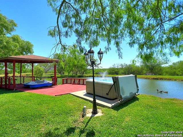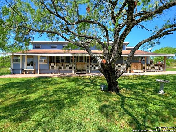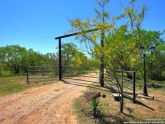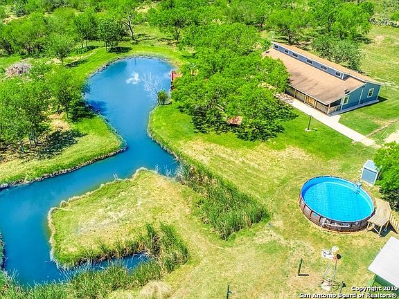 Country living at it's finest in Pleasanton, TX! Gorgeous single story ranch style home with tons to offer all sitting on a private gated 7+ acres. Some of the features include an open floor plan, vaulted ceilings, recess lighting, and an indoor sauna/tub. Then step out and enjoy the wildlife, privacy & serenity by sitting on the large covered porch. Exterior features include an above ground pool, cat fish stocked pond fed by a dedicated well, chicken coop, and 3 horse stalls. Make sure to feed the fish!