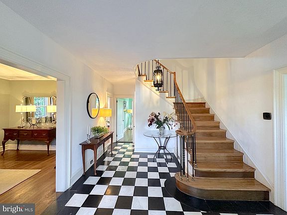 The Flagstone walkway leads you into the timeless charm of this Mediterranean-style sanctuary, nestled in the heart of Merion Station. As you cross the threshold, the grandeur of the large foyer, adorned with Marble flooring and an oversized coat closet, welcomes you. Immerse yourself in the expansive step down living room, boasting beautiful hardwood floors, gas fireplace, and  French doors leading out to a covered enchanting garden patio – an ideal space for relaxation and entertaining plus an open patio.  Discover a versatile den that could quickly transform into a guest bedroom, complete with a bathroom featuring a stall shower and ample closets.  The generously sized dining room with built-in China closest seamlessly connects to the large eat in kitchen with a Corian countertop center island, with top of the line appliances, tile back splash, a separate countertop eating area, and tile floor. Offering convenient access to the laundry/mud room with a large pantry closet, a door to the outside, a door to the upstairs suite, and a door to the one and a half -car garage. Venture downstairs to the finished lower level with paneled walls and tile floor,  an outside egress, and a powder room. This family room provides a perfect escape or additional living space.    A wide curved staircase leads to the landing with a hall bathroom and oversized bedrooms, including one with a Juliette balcony and skylight. The primary bedroom features a cozy gas fireplace, another Juliette balcony, French doors leading to the deck area, a large walk-in closet plus and additional closet, a full bathroom that opens to an adjoining room –for a serene sitting area. There is also a hall linen closet. Step down to the Au Pair suite, which has an additional hall bathroom, another large bedroom with skylight, two ceiling fans, a hall cedar closet, and an additional closet and access to the back staircase.  This home, though awaiting modern touches, is in lovely condition with immense potential for customization. This property presents a rare opportunity, providing the future owner with immediate equity. Enjoy the convenience of strolling to shops, restaurants, houses of worship, seamless commutes via the nearby Merion train station and bus stop, and close proximity to the award-winning Merion Elementary School. Explore the charm of this Mediterranean treasure and imagine yourself living here.