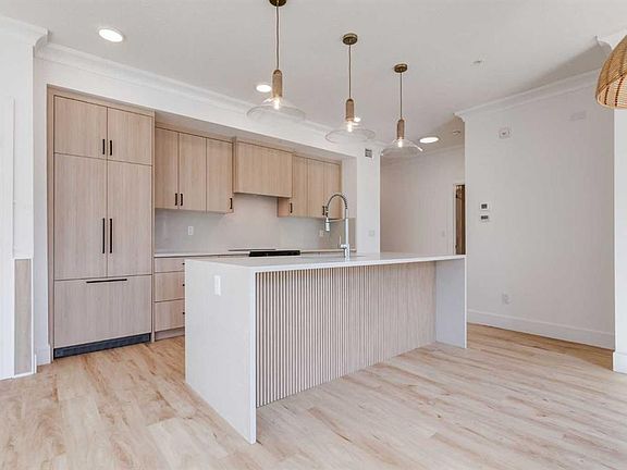 Discover the "Argento" floorplan by award-winning Rohit Homes—a beautifully designed 2-bedroom, 2-bathroom corner unit that offers the perfect balance of style and functionality. Located on the second floor in the sought-after Quesnay at Currie Barracks, this bright and airy home is flooded with natural sunlight, making it an ideal sanctuary for downsizers or anyone seeking a serene, low-maintenance lifestyle. Featuring the tranquil Ethereal Zen color palette, the interior exudes calm and sophistication. Designed by the award-winning interior designer, the unit includes premium finishes such as 9' ceilings, quartz countertops with a waterfall edge, a quartz backsplash, full-height cabinetry, a stainless appliance package, bespoke light fixtures, and window coverings. The open-concept layout seamlessly integrates the kitchen, dining, and living areas, perfect for both relaxing and entertaining. The spacious primary bedroom includes a private ensuite, while the second bedroom and additional full bath offer comfort and flexibility for guests or a home office. Step outside to enjoy a large SE facing balcony, extending your living space into the outdoors. This pet-friendly and AIRBNB-friendly building offers titled heated underground parking and plenty of visitor spaces. Ideally located minutes from downtown, Mount Royal University, and the vibrant amenities of 17th Ave and Marda Loop, the Argento floorplan is a rare gem. Limited units are available—secure your slice of modern living today! **Photos are taken from existing building of the same models. Not of the exact unit **