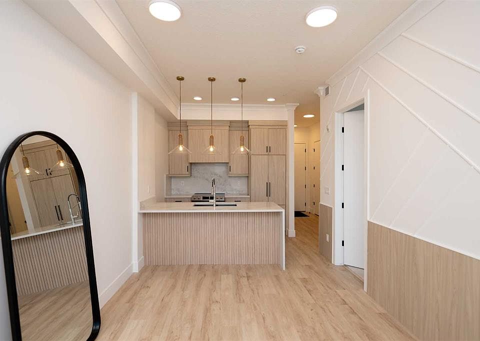 Welcome to the "Verde" floorplan by Rohit Homes—an inspired 1-bedroom, 1-bathroom home with a flexible den, designed to elevate your lifestyle. Perfectly positioned in the sought-after Quesnay at Currie Barracks, this west-facing unit is drenched in afternoon sunlight, offering a bright and welcoming living space. Complemented by the serene Ethereal Zen color palette, this home is a modern sanctuary with a calming atmosphere. The Verde floorplan blends elegance and functionality with carefully chosen details like 9' ceilings, quartz countertops with a stunning waterfall edge, a matching quartz backsplash, full-height cabinetry, stainless steel appliances, designer light fixtures, and tasteful window coverings. The open layout connects the kitchen, dining, and living areas seamlessly, providing an effortless space for entertaining or relaxation. The primary bedroom is thoughtfully designed as a peaceful retreat, while the den offers endless possibilities—whether you need a workspace, a reading nook, or extra storage. The luxurious bathroom is highlighted by fully tiled walls, refined finishes, and a spa-inspired tub/shower combo. A private west-facing balcony completes the home, making it the perfect spot to take in glowing sunsets or unwind after a busy day. In this pet-friendly, AIRBNB-approved building, you'll enjoy titled heated underground parking, visitor spaces, and unmatched convenience. Located minutes from downtown, Mount Royal University, and the vibrant offerings of 17th Ave and Marda Loop, the Verde floorplan is an unbeatable opportunity for modern living. Act fast—this west-facing gem won't be available for long! **Photos are taken from existing building of the same models. Not of the exact unit **