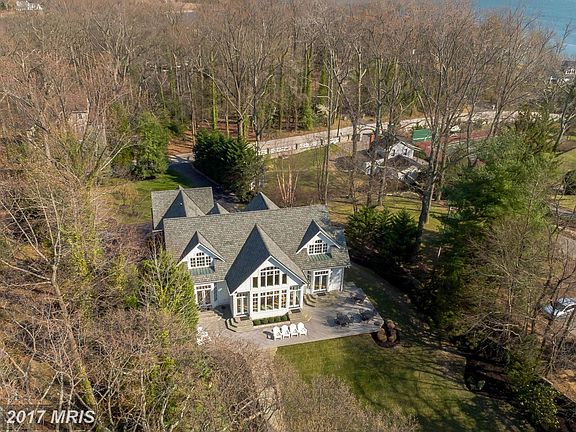 Striking architectural gem in very private setting has commanding views of the Magothy River. This is the home for the way you LIVE: Gorgeous maple floors throughout a two-story great room anchored by a gourmet kitchen and a wall of windows facing the water, deluxe main level master suite, and water vistas from almost every room. Private pier w/ 5 ft water depth. Lovely stone walks & walls.