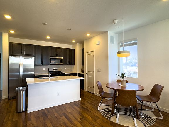 Rare 4-bed, 3-bath end-unit townhome near Lowry town center with in-garage electric car-charging and West-facing windows toward the mountains. This unit is new construction that was completed in July 2024.