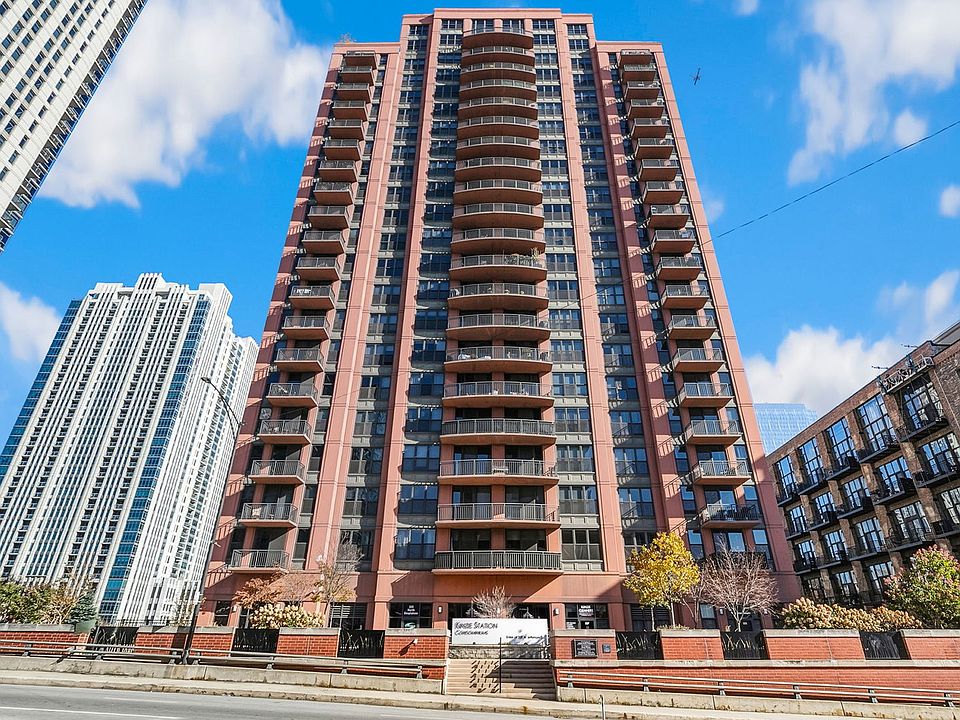 Experience the best of city living in this stunning studio at Kinzie Station, a full-amenity high-rise perfectly situated in the heart of the vibrant Fulton Market River District! This thoughtfully designed home boasts a beautifully renovated kitchen with stainless steel appliances, granite countertops, and a large breakfast bar overlooking the sun-drenched living room. A clever floor plan maximizes every inch of space with a hidden queen-size lofted bed offering abundant built-in storage below. This along with the oversized custom walk-in closet and large hall closet make organization effortless. Additional features include a tastefully updated bathroom with glass-enclosed tub/shower, in-unit laundry, sweeping city views, and gorgeous wide-plank hardwood flooring throughout. Prime heated garage parking spot and a separate storage locker included in the price! Residents of Kinzie Station enjoy incredible service and amenities, including a fitness center, party room, sun deck, bike storage, dry cleaners, Amazon lockers, guest parking, 24-hour front desk staff, and on-site management and maintenance. All of this in a pet-friendly and investor-friendly building with low taxes and low assessments! Absolutely unbeatable Fulton Market location - surrounded by amazing eateries, nightlife, and entertainment. Just steps from Jewel, the River Walk, the East Bank Club, and Randolph Street's iconic Restaurant Row. Convenient access to the Metra, the Pink & Green Lines, and the expressway makes commuting a breeze. This gem won't last long - schedule your showing today!
