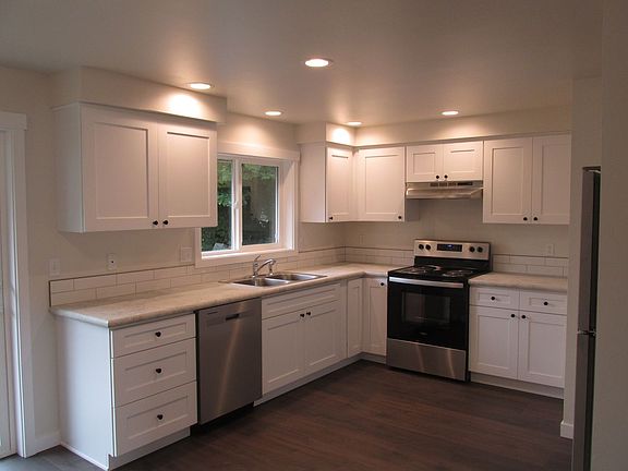 These units are open and bright, featuring 2 bedrooms, 1 bath with 872 square feet. Updates include new windows, window coverings, laminate wood flooring, bathroom & kitchen cabinets & countertops. New kitchen appliances range, refrigerator & dishwasher, interior doors and lighting throughout. There are 2 units on the ground level with patio area and 2 upstairs units with balconies. Laundry room on each level with new coin operated machines. Off street parking and mature landscaping. Close to school & downtown, bus line, Hwy. 20 & I-5. One year-lease required. $1795.00 per month and $1795.00 deposit. Water/Sewer/Garbage included. NO PETS!