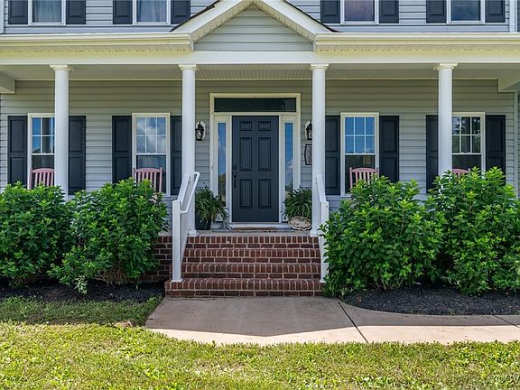 This timeless two-story farmhouse is perfectly situated on over 5 picturesque acres, offering open fields, tree-lined privacy, and scenic views in every direction. The inviting front porch welcomes you with crisp columns and black shutters—classic details that never go out of style. Step inside to find beautiful hardwood floors that flow throughout the main level, including the dedicated office with French doors and custom built-ins. The kitchen showcases shaker-style cabinetry, marble counters, a farmhouse sink, and an upgraded gas range with pot filler, all centered around a prep island ideal for daily routines or hosting. The layout continues into a bright and airy dining room and spacious living room with fireplace. A modern laundry room with marble counters, stylish cabinetry, and a powder room complete the main level. Upstairs, the expansive layout includes a serene primary suite with tray ceiling, plus a private bath featuring marble floors and countertops, a glass-enclosed shower, and a freestanding claw-foot tub. Additional bedrooms each offer character, from serene palettes to bold design, and the hall bath is finished with slate flooring for added durability and style. The oversized attached garage is fully insulated and equipped with a Tesla charger. And above the garage is unfinished space, perfect for a bonus room or additional bedroom! Practical upgrades include a whole house surge protector and well water filtration system. Out back, enjoy a fenced yard with a fire pit, swing set, and peaceful wooded surroundings. Beyond the fenced space lies a blend of cleared pasture and natural regrowth—a blank canvas for you to make it your own. Schedule your showing and come see it for yourself!