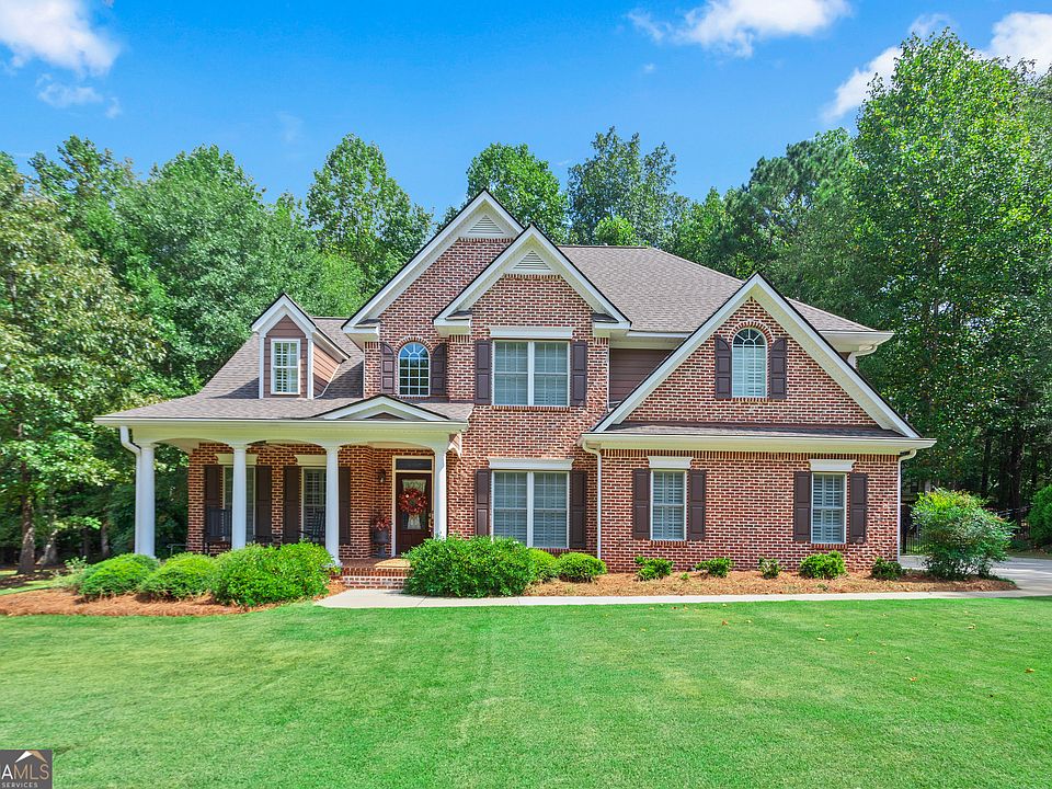 The timeless brick exterior, new roof, newly redesigned and professionally landscaped front and rear yard, an updated kitchen, and robust neighborhood amenities make this a stand-out among Coweta homes. This home features 4 bedrooms and 3 full baths with the guest suite on the main. Dark gray granite and new white cabinets and new ss appliances keep the look of this home up-to-date and relevant to today's buyers. Large kitchen with breakfast room has a great view of the vaulted living room. Formal dining room and dedicated office with French doors on the main floor make great use of every inch in this floor plan. Guest room and full bath on main. Upstairs find the primary suite with Grecian-inspired tilework bathroom in soothing blue-gray tones, two additional bedrooms and a third full bath. Laundry room is conveniently located on the second floor near the bedrooms. Outside you've got the best of both worlds with the covered brick-floored front porch and the open back deck. Back deck overlooks a lush flat lawn that lends itself perfectly to a FUTURE POOL as the lawn is open, fully fenced, irrigated separately from the front, and septic is already located in front of the home. Lake Redwine is an amenity-rich community with a 300 acre lake where you can swim/boat/fish, a marina, a Jr Olympic pool + second "quiet" pool for those who like to read and relax, club house, tennis & pickleball courts, playground, and streetlights/sidewalks throughout. All new appliances remain with the home including fridge plus washer and dryer remain as well! Natural Gas cooking, heat, and water heater.