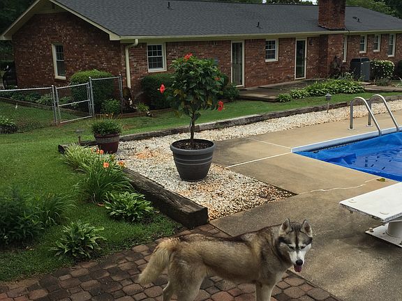 For sale by owner! Beautiful 3 bedroom, 2 bath brick ranch with ±1800 square feet on a 1.05 acre corner lot with in-ground pool, attached 2 car garage, and an additional detached 875 square foot garage! As you enter the home you'll love the open floor plan in the living room, the floor to ceiling brick fireplace, and the exposed beams. The upgraded kitchen boasts stainless steel appliances, a center island, tile backsplash, beautiful cabinetry with glass front doors, and much more! The open floor plan continues in the kitchen with a large, light filled dining area that features a bay window. The master bedroom features its own attached full bathroom and the secondary bedrooms are both adequate size. In addition to all this you have a large walk-in laundry room that leads out to your very own, private, in-ground pool. And the attached two car garage (± 400 sq ft) plus the detached garage (± 875 sq ft) offer so many possibilities for storage, a workshop, a pool house, and so much more.