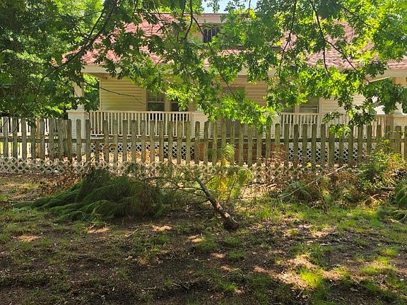 Nestled on 2.82 secluded acres dotted with mature trees, this historic circa-1900 single-story residence offers around 1,700?sq?ft of classic charm. Inside, soaring 10–11-foot ceilings frame spacious rooms filled with hardwood floors, a large living room with closed up fireplace, formal dining room, and kitchen equipped with a stove and dishwasher. The recent renovation includes two generous bedrooms with built-in closets, plus one full and one half bath, thoughtfully joined for flexible layout options. A full-width covered front porch invites peaceful summer breezes and quiet afternoons overlooking the large front yard. The property includes vinyl siding, insulated storm windows, and a separate outbuilding—ideal for storage or future workshop space.