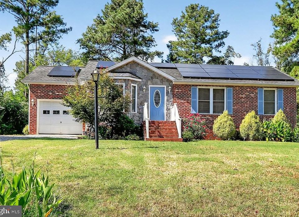 Situated in the gated lakeside community of Lake Caroline, this four-bedroom, three-bath brick-front rambler combines comfortable living spaces with easy access to resort-style amenities. The home offers over 1,700 finished square feet across two levels. The main floor features gleaming hardwoods, inviting living and dining areas with ceiling fans, and a kitchen with abundant storage, granite counters, and stainless steel appliances. A private primary suite with full bath anchors this level, along with two additional bedrooms and a second full bath. The fully finished lower level expands the home’s versatility with a large 4th bedroom, full bath, flexible multi-use space, and a convenient kitchenette—perfect for guests or extended family. Outdoor living includes a wood deck, paver patio, and a spacious, tree-lined half-acre lot, ideal of relaxing or entertaining. An attached garage and expansive driveway provide ample parking. This home also comes equipped with transferrable solar panels, delivering immediate energy savings with the peace of mind of predictable utility costs. Residents of Lake Caroline enjoy resort-style amenities, including two sandy beaches, 11 recreation areas with pavilions, two marinas for boating, fishing, and swimming, plus a swimming pool, tennis and pickleball courts, basketball courts, a clubhouse, and 24/7 security. With four bedrooms, three full baths, and multiple living areas, this home offers comfort, flexibility, and lifestyle—all just minutes from I-95 in a beautiful lakeside setting.
