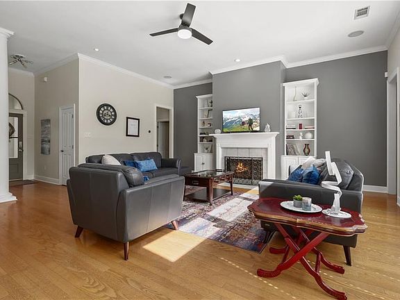 Tucked away on a quiet cul-de-sac, this property offers both privacy and comfort. Step inside and you'll be greeted by high ceilings and plenty of windows that flood the space with natural light. The split floor plan provides great separation between living areas and bedrooms. The large den features a radiant gas fireplace and built-in shelving, great for those chilly evenings. *** The open kitchen is a chef's dream with new quartz counters, ceramic backsplash, and stainless steel appliances. There's even a breakfast bar with seating and corner pantry for added convenience. Enjoy your morning coffee in the sunny breakfast area overlooking the privacy-fenced backyard and huge patio. *** For more formal occasions, there's a dedicated dining room. *** The primary bedroom boasts a step ceiling for added charm. PLUS, a large indoor laundry room makes chores a breeze. *** Extra perks include double-insulated windows, a Nest thermostat for energy efficiency, and an alarm system with WiFi cameras for added security. 2021 - NEW ROOF, 2023 - NEW AIR HANDLER & CONDENSER. Don't miss out on this fantastic opportunity to own your slice of Slidell!