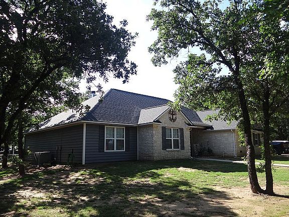 Escape the city to country living with city conveniences near Lake Graham in Graham, TX. This custom built home (2009) has 4 bedrooms, 3 baths on just over on acre and sits within minutes of Lake Graham in the quiet, friendly Lakewood West addition. Recently updated (March 2020) kitchen and bathrooms with granite countertops. Open concept design features a living room with WBFP, 10 foot ceilings, kitchen island, dual dining areas. Flooring is polished concrete. Master suite has two walk-in closets, dual sinks, shower, and free standing tub. Bedrooms 2 and 3 share a hallway bathroom, bedroom 4 has a private bath. Over sized double garage with storage, 24x24 double carport for boat, lake toys. 21x18 Shop