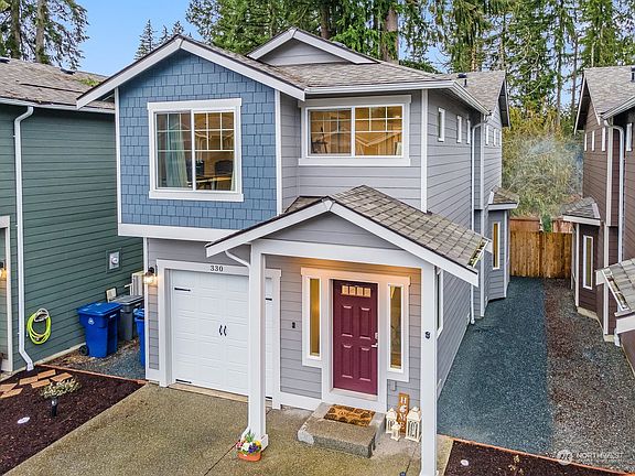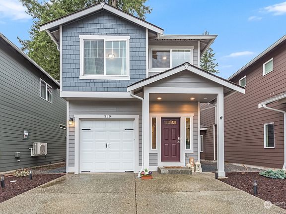 This Braidwood Village gem was built in 2020. Be welcomed home to the covered front porch while around back the fully fenced backyard provides an entertaining space with a patio and new sod and landscaping. Mini splits provide heating and AC. Main floor highlights include an open floor plan, upgraded luxury vinyl planked flooring, high ceilings, and white trim package. Stunning white kitchen has all the upgrades including quartz counter tops, tile backsplash and S/S appliances. Upstairs greets you with a landing that provides an office space, convenient laundry room, 2 large bedrooms and the primary bedroom with its own full bath. Seconds away from your next Mountain Loop Hwy adventure! Preferred lender offering a $5K buyer credit at close.