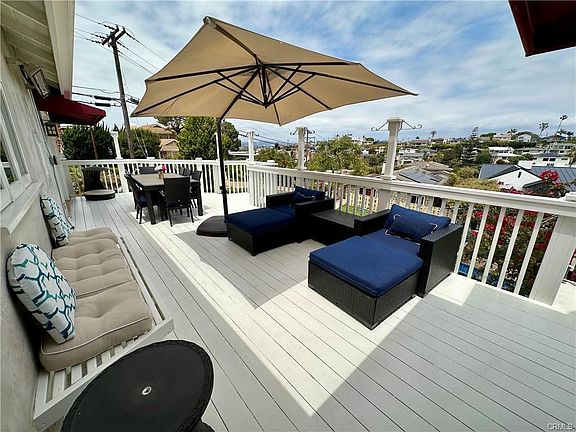 Indulge your Top Chef fantasies, relax in your lush garden, entertain in style on your view deck w/a bottle from your private wine cellar. This charming contemporary craftsman just a few blocks to the beach has been owned for years by a Master Gardener and her craftsman/engineer hubbie. The results are stunning. Great room w/bright open plan flows to city/mountain view dining room w/50 bottle wine fridge and French doors to huge entertainer's deck/outdoor room. Dreamy cook's kitchen w/stone counters, center island, Thermador cooktop, custom cabinets, oak floors. Cheery family/media room w/limestone FP, floor-to-ceiling bookshelves and AV surround system. Serene master w/marble bath, skylight, large shower. Bonus room/laundry makes extra space for crafts, workshop or playroom. Amazing multi-zone garden w/fabulous fruit trees, 35 rose bushes and raised beds of herbs and veggies. Wine cellar too! Gracious, open, sunny and surrounded by gorgeous gardens. California living at its best.