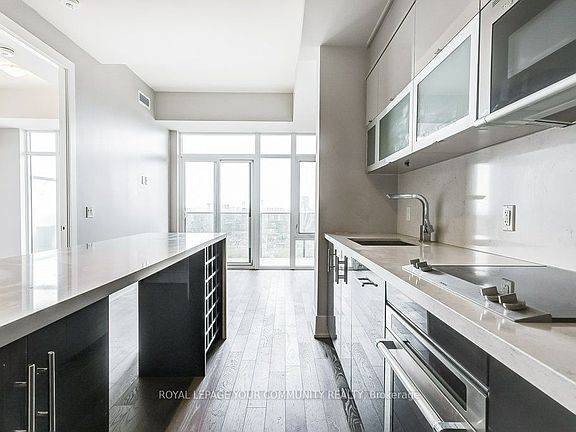 Imagine stepping into your sun-drenched sanctuary, 27 stories above the vibrant pulse of the city. This exquisite 2-bedroom, 2-bathroom residence at the prestigious 330 Richmond by Green park offers 769 square feet of meticulously designed living space. Soak in the sun through expansive floor-to-ceiling windows, accentuating the hardwood flooring & soaring 9-ft ceilings. Your private 123 sq ft balcony beckons, a sprawling outdoor haven to soak up breathtaking, unobstructed panoramas of the Toronto skyline. The kitchen spoils boasting abundant cabinetry, stainless steel appliances, quartz countertops complemented by a massive centre island with seating for 4. The spacious primary suite features a 4-piece ensuite bathroom, generous windows, and a substantial double closet. The equally well-appointed 2nd bedroom offers ample space and includes its own double closet. Unbeatable location in the heart of it all with the best restaurants & amenities the city offers with transit at your doorstep. Includes Parking & Locker. Why leave home when your amenities include a 24 hr Concierge, Outdoor Pool with Terrace, Gym, Party Rm, Sky Lounge with BBQs, Games & Media Rm, Guest Suites, Theatre Rm and so much more! This isn't just a condo; it's an elevated living experience.