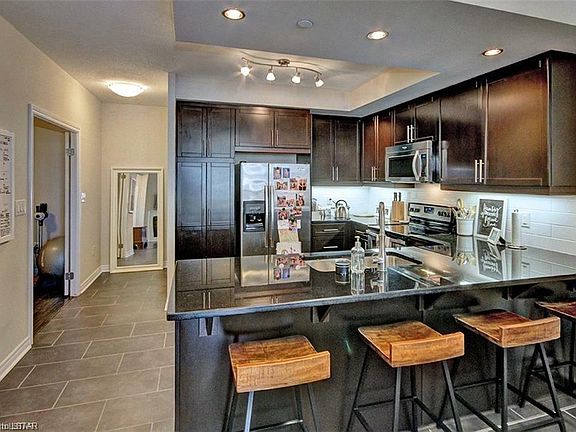 Great Opportunity to Live at the Renaissance II – 19th Floor North Facing Condo, with Wide Underground Parking Spot! Bright, Quiet, Private 1014 Sq Ft Popular Open North Facing 1 Bedroom Plus Extra Large Den (11' x 10'6')! Executive Condo in Downtown London. Walk to Everything! High End Stainless Steel Appliances Complete with Stone Counter Tops with In-Suite Laundry. All Appliances Included. Separate Den with French Door Makes a Great Office or 2nd/Guest Bedroom. Convenient Indoor Parking (P2-47). Building Facilities include Large Professional Exercise Centre w/Plasma TVs, Massive Party Area w/Pool Table, Professional Theatre Room, Outdoor Terraces contains Gas Fireplace, BBQs, Putting Green, Loads of Patio Furniture & 2 Guest Suites! Condo fee of $376.60 includes HEAT, COOLING (A/C), WATER (Hot), BUILDING INSURANCE/MAINTENANCE ETC which is a Majority of your Monthly Utilities. Centrally Located to All 3 London Hospitals. Electric EV Charging Port Available, Ask Listing Agent for Details