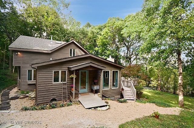 Welcome home to this rustic riverside retreat in the historical Gold Coast neighborhood of Elgin. This four bedroom cedar-sided home has been lovingly shaped over one hundred years, with an open floorplan and endless opportunity to make it your own. Enjoy the airy eat-in kitchen and the expansive family room with wood-burning fireplace from which to enjoy the spectacular views. Spacious and inviting, the first floor boasts hardwood throughout the family room and two bedrooms, including the master suite with soaking tub. On the second level there are two additional bedrooms, an office and another full bath. At the bottom of the winding driveway you will find a craftsman''s garage, complete with walk-up loft area. This two story heated and insulated garage can be used year round for a tinkering, tooling and storing big toys. Situated on over one half acre, The peaceful natural landscape offers direct access to the Fox River Trail and includes parcel with water rights.
