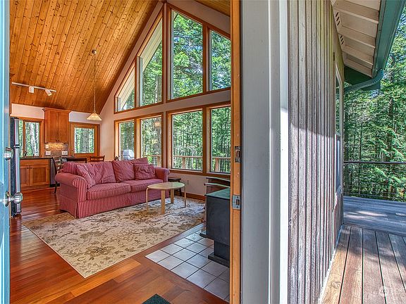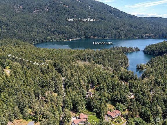 Ideal cabin across the street from Moran State Park and Cascade Lake. Stroll around the corner to the back trail leading to the lagoon and continue on into the park from this access. Near Rosario Resort, marinas and owners enjoy use of the outdoor pool and recreation areas. A-Frame style was completely remodeled/updated in 2010 with open great room warmed by a wood burning stove, 2 bedrooms and a full bath on the main floor, upstairs is a spacious loft for an office or more sleeping space. Epe wrap around deck w/ southern light filtered through evergreens. Detached garage has space for a car plus recreational gear. Low maintenance landscaping has potential for a garden. Well maintained and possible to purchase turn-key to enjoy the season.