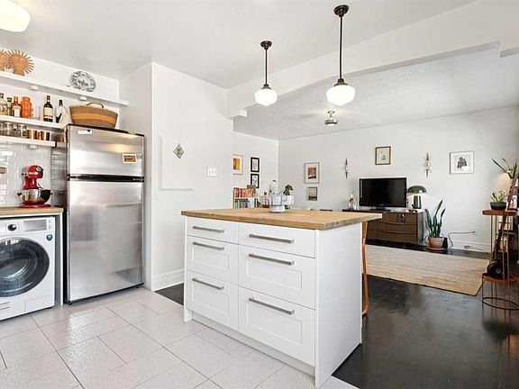 Welcome to this stunning one bedroom condo located in the trendy and highly walkable area of Mission. From the moment you approach the property, you'll be captivated by its timeless curb appeal. Meticulously landscaped grounds with mature trees, privacy hedges, and an array of flower beds set the scene as you walk up to this historic building with its classic red brick façade and charming front entrance. Proceed to the top level of the building and step inside this meticulously maintained unit, where a modern and sophisticated aesthetic awaits. The open-concept living space is bathed in natural light, creating an airy and inviting atmosphere. The rich dark hardwood and exposed brick add a touch of industrial chic to the space, and contrast perfectly with the kitchen’s sleek white cabinetry and subway tile backsplash. The kitchen also features a central island with butcher block countertop and stainless steel appliances. The open floorplan makes hosting gatherings and entertaining a breeze. Down the hall, the spacious bedroom is a tranquil retreat, offering a comfortable space for rest and relaxation. A four piece bathroom and in-suite laundry machine complete the space. The ideal location of this condo allows for the best of both worlds. Step outside the door and find yourself immersed in the vibrant 4th Street corridor, a bustling hub of trendy restaurants, boutiques, and cafes. Or, take a short stroll to the scenic Elbow River pathway system, and enjoy endless opportunities for jogging, biking, or simply enjoying a leisurely walk along the water. The proximity to the downtown core—a mere 15-minute walk—makes for an effortless commute, allowing you to live a dynamic, car-free lifestyle. The building offers parking stalls on an annual lottery system, and permits are available for street parking. This home, with its exceptional location, historic charm, and well-designed interior make it a rare find in the Calgary market. Call today to book a private showing.