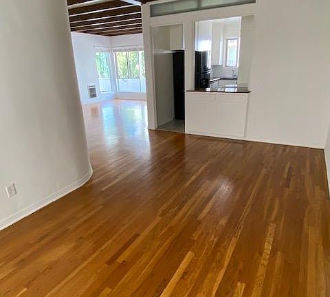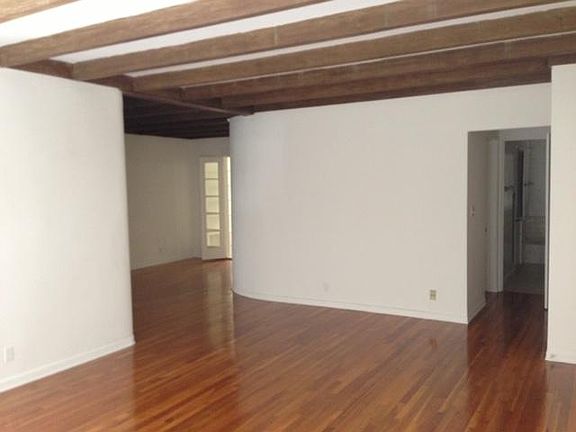 Large, bright and cheerful Paul Williams historic monument beauty with hardwood floors, high beam ceilings, great closet space, includes stove, refrigerator and dishwasher, patio/balcony, laundry in building. Parking available. Details regarding parking to be discussed. Walk to Beverly Hills, Cedars Sinai, trendy Robertson Blvd.....Best location! One year minimum