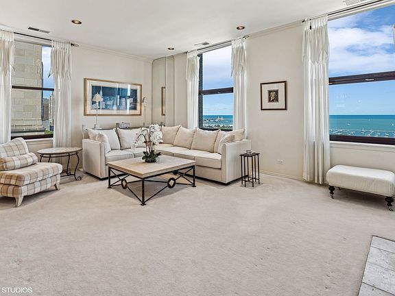 Welcome to this spacious and opulent 3-bedroom, 2.5-bathroom lakefront condo on the Magnificent Mile of Michigan Avenue. As you enter this stunning corner unit, you'll be immediately struck by the expansive views of the Lake Michigan. Aside from the views, this unit features custom built-ins, a welcoming foyer, and cozy fireplace. The open-concept layout is perfect for entertaining, with a generous living room that emphasizes the breathtaking lake views. The living and dining spaces with built-in seating flows seamlessly into the kitchen, ideal for those who love to cook. The primary suite is a tranquil haven, offering spectacular lake views, a spacious walk-in closet, and a luxurious en-suite bathroom with a soaking tub, separate shower, and dual vanities. The second and third bedrooms are also generously proportioned, making them perfect for guests or a home office. Additional features include an in-unit washer and dryer, ample storage throughout, and TWO private parking spots in the building's garage for an additional $50k. Large storage unit on same floor. Located in a full-service building with 24-hour door staff, a fitness center, and a bike room, and convenient guest parking. Positioned just steps from the Yacht Club, Art Institute, Symphony Center, theaters, museums, top-tier restaurants, Mag Mile shopping, and the lakefront, you'll enjoy unparalleled access to the city's finest amenities. Seize the opportunity to experience luxurious lakefront living in this coveted location.