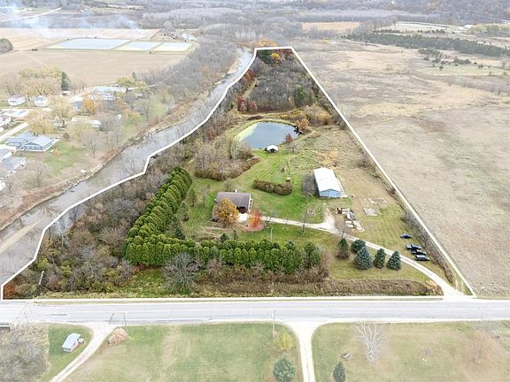 Welcome to this beautiful ranch-style home perfectly situated on the edge of town along the Volga River consisting of 12 acres. This property offers the best of both worlds—peaceful country-like surroundings located on a hard service road—this property is a true gem. The home features three bedrooms on the main level with an additional bedroom and bath in the finished lower level, providing plenty of space for family and guests. Enjoy an open and inviting layout designed for comfort and functionality. Step outside to take in the scenic views of your own private pond and a lovely section of timber, perfect for nature walks or quiet relaxation. A storage shed adds practicality for lawn equipment, outdoor toys, or hobby space. With three full bathrooms, an ideal layout, and a setting that feels like your own retreat, this property offers everything you need to live, relax, and enjoy life at home.