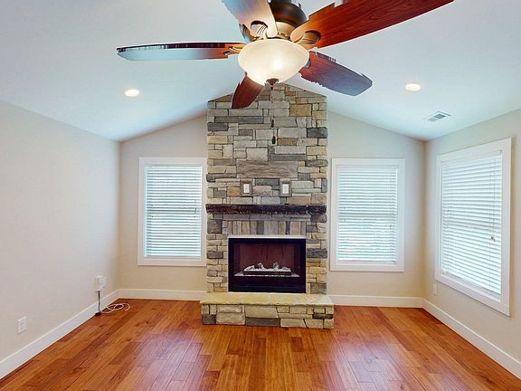 Rock fireplaceLovely front porchHardwood flooringUpgraded appliancesCovered porchOpen floor planSplit-bedroom layout
