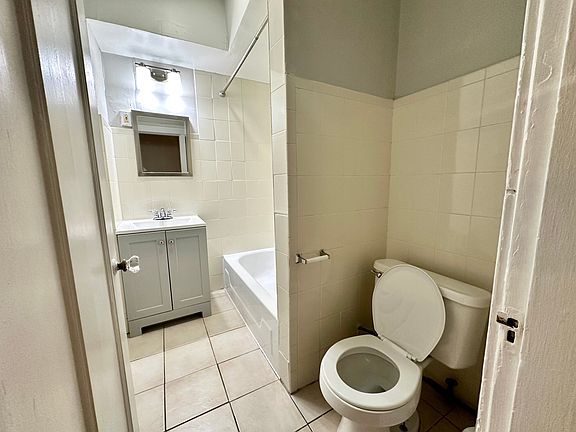 Updated Bathroom: Renovated with modern tile and a contemporary vanity.
