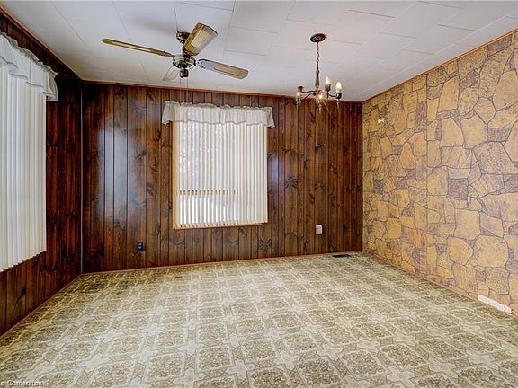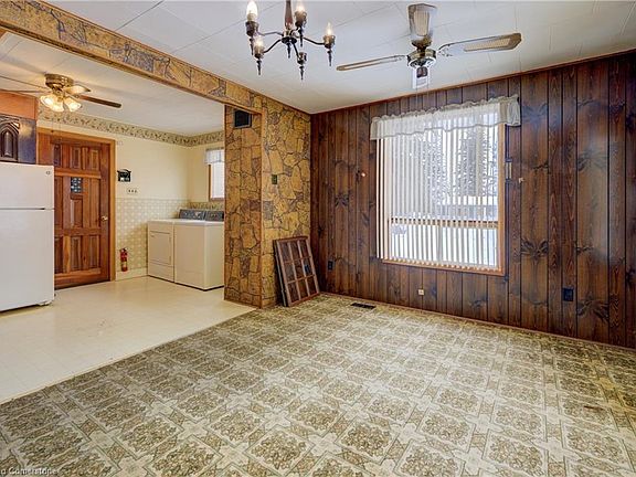 Nestled among a treed setting on almost 4/10 of an acre next to a walking trail and the rear portion of a school athlete field you will find this 3 bedroom, single bath bungalow with a full unfinished basement. There is a substantial metal clad garage/workshop for the hobbyist or for the storage of your car and toys. A great location close to day care as well as elementary and high schools.
