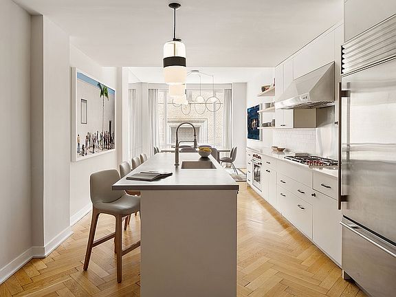 Additional highlights of this exceptional residence include oak herringbone floors, an in-unit washer/dryer, a Nest home system, and a private storage unit that transfers with the sale.