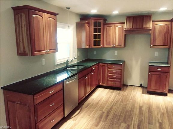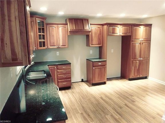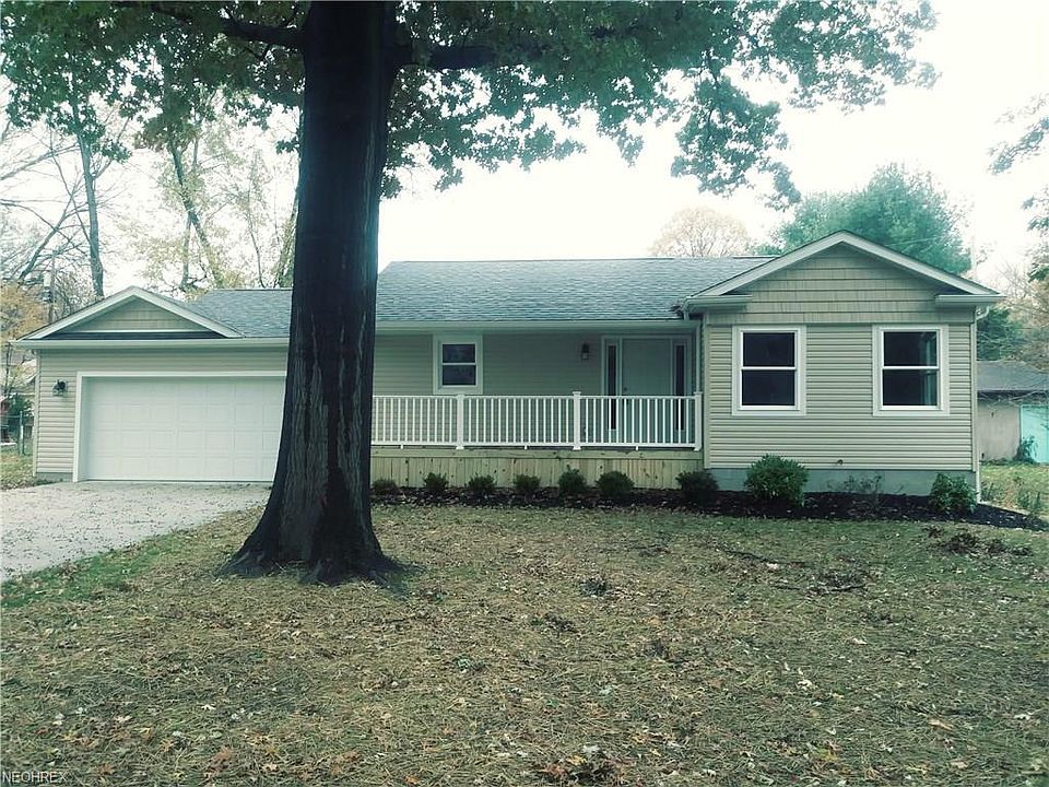 This Ranch is pure perfection ! It is new from the basement floor to the roof! The open floor plan leads from your rich Cherry cabinets with Granite counters kitchen, flowing into the large living room with a lot of natural light. 3 Large bedrooms with the master having his and hers closets. Bath and Master bedroom doors enlarged to accommodate Seniors that may need a little more room. Windows, roof, floors, Kitchen, Baths, Floors, carpet Furnace, hot water tank, plumbing, wiring, doors, glass blocks, rear deck 12x10, covered, front porch 20x6 and attached 2+ garage all NEW!! A first floor laundry was added for convenience with rear exit to back deck Front porch is covered for sitting out and enjoying the evening. Located close to all shopping areas of west Akron and Fairlawn. Schedule your private showing today because this will not last !!