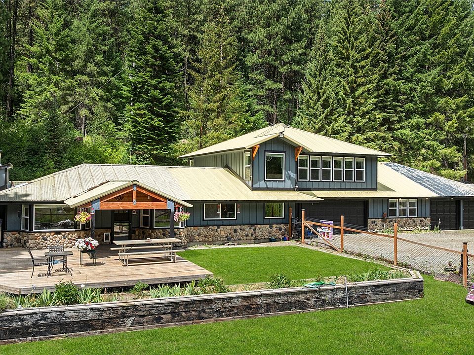 Backed by 351,000 acres of public land, this unique property offers privacy, space, & versatility. Features include a 4-car garage, 2 detached shops (1 insulated with 220V, tall bay, & separate power), plus 2 bonus rooms perfect for an office, crafts or workshop. Nearly everything has been updated: remodeled kitchen & baths, new LVP flooring, solid knotty pine doors, appliances, wood stove, HVAC & HardiePlank siding. Huge primary suite offers a walk-in closet, dimmable lighting & a bonus room ideal for a future ensuite. Outside, enjoy a covered patio with soffit lighting, GORGEOUS creek, fenced yard, playset & ample parking for RVs, boats, & trailers on the regraveled drive. ADU unit w/ bath & kitchen.