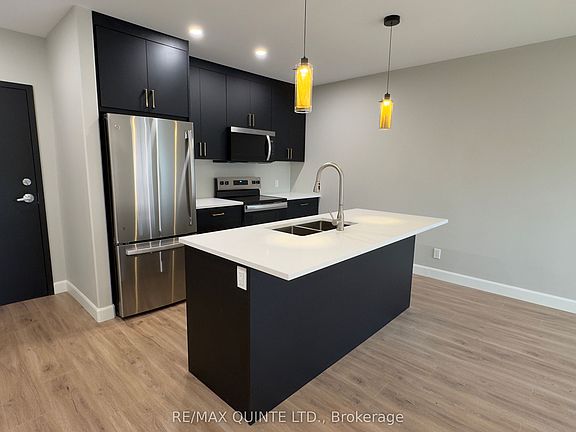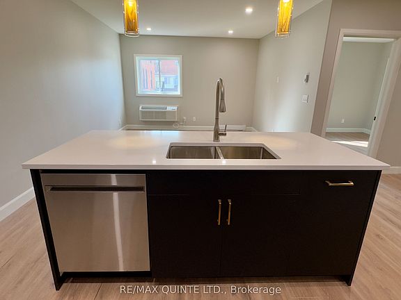 This beautifully finished 1-bedroom, 1-bathroom apartment is located on the second floor of a fully restored 1846 heritage building in the heart of Tweed. Newly constructed within the original historic shell, this unit offers a blend of character and modern convenience in a bright, open-concept layout.The kitchen features custom black slab cabinetry with solid wood interiors, white quartz countertops, and brand new stainless steel appliances. A kitchen island provides additional prep space and casual seating. The bathroom includes a tiled shower, quartz vanity, and tiled floors for a clean and timeless finish. Throughout the apartment, you'll find luxury vinyl plank flooring, stylish light fixtures, and ample pot lighting for a warm, modern ambiance. Additional features include an in-suite all-in-one washer and dryer, a dedicated hot water tank, a private mechanical/storage room, and an energy-efficient heat pump for heating and cooling. One outdoor parking space is included. The building has all new hydro and water services, with separate meters for each unit. Tenant pays hydro, heat, and water. No pets and no smoking permitted. First and last months rent required. Enjoy life in downtown Tweed, just steps from cafes, shops, parks, and the waterfront at Stoco Lake. With its small-town charm, scenic surroundings, and close proximity to Belleville, Tweed offers a relaxed lifestyle with every essential nearby. Available immediately.