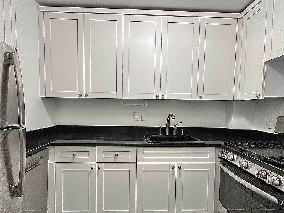 Both bedrooms can accommodate a queen-sized bed, and dresser/desk. The apartment features parquet hardwood flooring and detailed renovations throughout, impressive stainless steel appliances with a dishwasher in the kitchen, and an incredible amount of cabinet space within. Both bedrooms have large windows, are very spacious, and get tons of light.