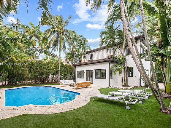 A beautiful Mediterranean residence in the heart of Miami Beach! The heart of the home is the newly renovated designer kitchen, featuring stylish checkered floors and a walk-in pantry, flowing seamlessly into the dining/living area overlooking the inviting pool. Step outside to discover a generous, private pool area surrounded by lush foliage, perfect for outdoor gatherings. On the main level, you'll find a bedroom, an office, and a versatile playroom or guest room, ideal for entertaining or visitors. Upstairs, 3 generously sized bedrooms with ensuite bathrooms await, 2 of which open to a large balcony with serene views and natural light. The home boasts all-new appliances, impact windows, and a new roof, offering peace of mind for years to come.