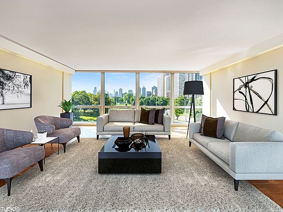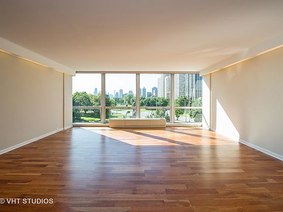 Location, View, and the Distinctive Mies Van Der Rohe Design are all here! You'll have easy access to Diversey Harbor, the park, lake, public transportation, plus a wide variety of shopping and dining options. This SW corner 3bdrm/2bath home with views from every room features a large living-dining area, master bedroom with ensuite bath and walk-in closet (currently 3rd bdrm), wood floors throughout, floor to ceiling windows, and additional storage. Drive into the garage and you're home. Enjoy the pool in the summer. Cook out on the building patio with grills. Entertain in the hospitality room. Work out in the fitness center. Heat, ac, cable, internet are included in your assessment. Located in the Nettlehorst school district. Don't wait to make this your home!