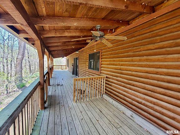 Have you always dreamt of living in a log cabin in the woods? Now is your opportunity to own your own log cabin AND 10 acres to make that dream a reality! Upon entering you'll notice the beautiful cathedral ceiling. To your right, a sunken, cozy sitting area with a stone, wood burning fireplace. It's a great place to read or visit with family and friends. To your left, a family area with plenty of room. The dining area is straight ahead, where you can see outdoors through the double glass doors. There are 2 bedrooms on the main level with ample closet space. There is a full bath on the main level. Upstairs, one side of the balcony look over offers a large primary bedroom with 2 oversized, step-in closets. The other side has a full bathroom and a secluded sitting area. The kitchen has custom wood cabinets, a built-in bar and breakfast eating area. The side entry brings you into the utility room and storage area. In addition to all this, there is a full basement! It will make a great space for a workout room, hobby room or workshop. There is also a room that can serve as an additional bedroom too. The home is heated and cooled with geothermal. This log home is constructed with D logs in a butt and pass style corner construction. A new septic motor was installed in 2021. The home would make a great vacation rental. 100 miles from St Louis, 29 miles from Marion and I-57, 17 miles from Bald Knob Cross, 7 miles from Hickory Ridge Winery, and 5.8 miles from Pomona Winery.