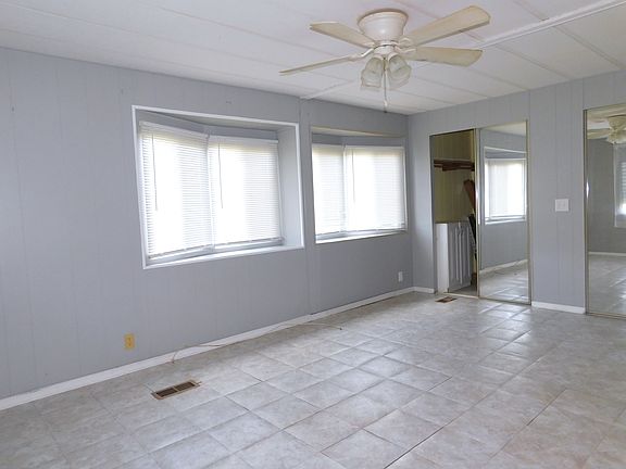 Great home with lots of space! 2 bedroom, 2 bath home offers 1248 square feet of living space plus accessory spaces including a lanai measuring 8' x 10' and a 10' x 12' utility shed. The lanai has vinyl windows as well as a wall AC unit to cool the area. Home boasts updated vinyl laminate flooring throughout the kitchen, living, and dining room. Kitchen features a large open archway space that goes into the dining and living areas. Dining area features a large built-in storage unit with glass display cabinets as well as enclosed cabinets and drawers. Living room is comfortable with lots of natural light from the bay windows and offers access to the lanai. The master bedroom features a bath ensuite with a walk-in shower as well as a huge walk-in closet. The main hallway bathroom boasts a tub shower combo. The laundry room offers extra storage space as well as another fridge. The central heat and air unit is only 5 years old! Call today to schedule your showing! Woodbrook Estates is an Active, pet-friendly, 55 Adult community- the monthly Fee Package includes: Land-lease and Use of all Amenities for $772. (No Additional Taxes.)