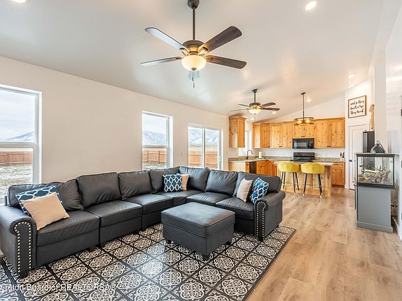 Discover your new retreat in this modern gem nestled in the charming town of Thayne, WY. This inviting 3-bedroom, 3-bathroom home spans 1,390 square feet and offers breathtaking views of three mountain ranges, creating a picturesque backdrop for every season. Inside, you'll find a comfortable, open-concept living area and a spacious kitchen perfect for entertaining. The fully landscaped and fenced yard adds privacy and ample space for outdoor enjoyment, while the attached 2-car garage ensures convenience and additional storage.