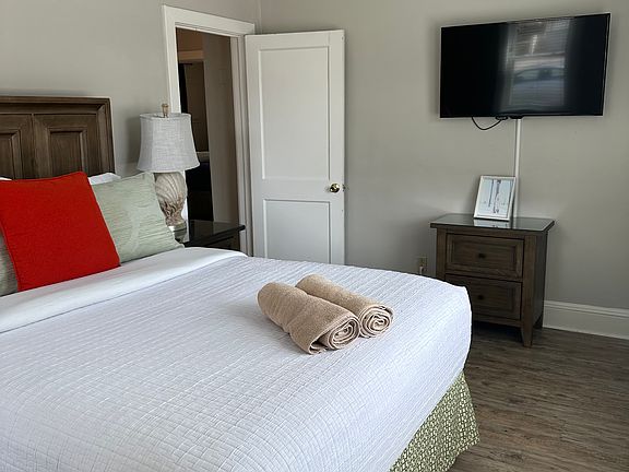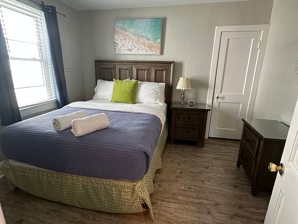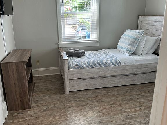 This property is located blocks away from restaurants and the grocery store. It is fully furnished with two queen size beds and a twin trundle bed. Also, it has a living room set with a television, a dining room setup with tables, chairs, and a buffet cabinet. The kitchen has granite countertops, stainless steel appliances, and set up with pots, pans, silverware, dishes, and cookware. There is a laundry room with a washer and dryer. A screened in porch is attached to the house and it has a driveway for parking.