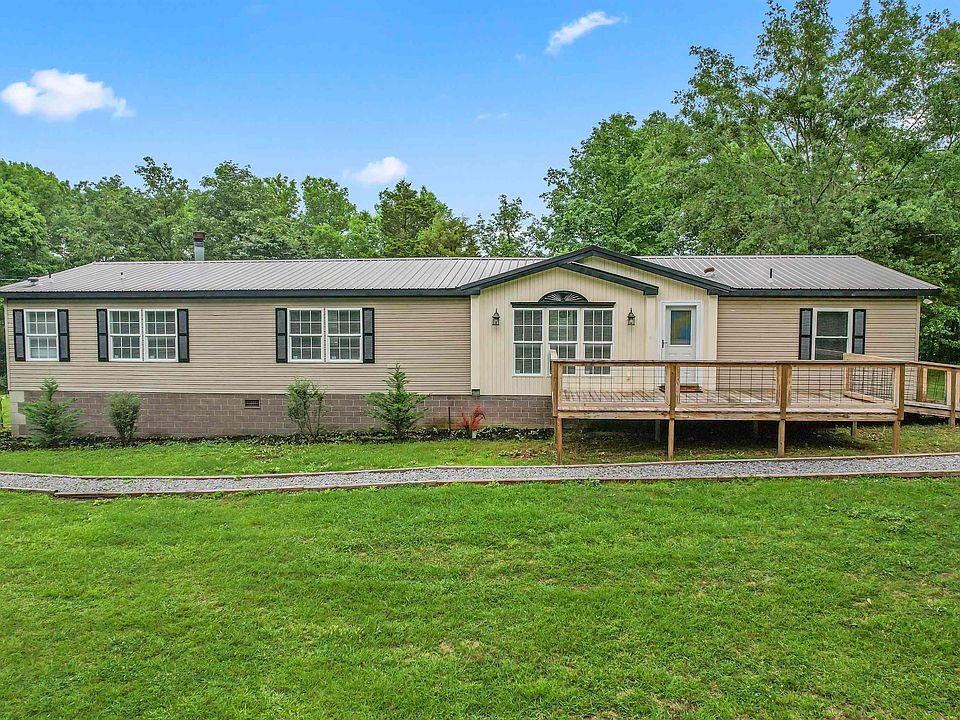 Welcome to your spacious retreat! This newly remodeled home offers a generous 2240 square feet of living space, nestled on a sprawling 3+ acres at the end of a private road. Step inside to discover a modern interior featuring fresh updates and stylish finishes throughout. The open-concept layout creates a welcoming atmosphere, perfect for gatherings and everyday living. The kitchen boasts sleek stainless steel appliances, ample cabinet space, and a convenient center serving window. Retreat to the expansive master suite complete with a luxurious ensuite bathroom and walk-in closet. Outside, enjoy your large front porch and rear deck looking over the outdoor space, ideal for outdoor activities, gardening, or simply taking in the sounds of nature. Enjoy the view of a beautiful nearby pond. Located in a quiet cozy setting yet just a short drive from town, this property offers the perfect blend of privacy and convenience. The home also features an access ramp to the rear deck.